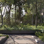 Extensive botanical landscaping that mirrors the adjacent parkland.